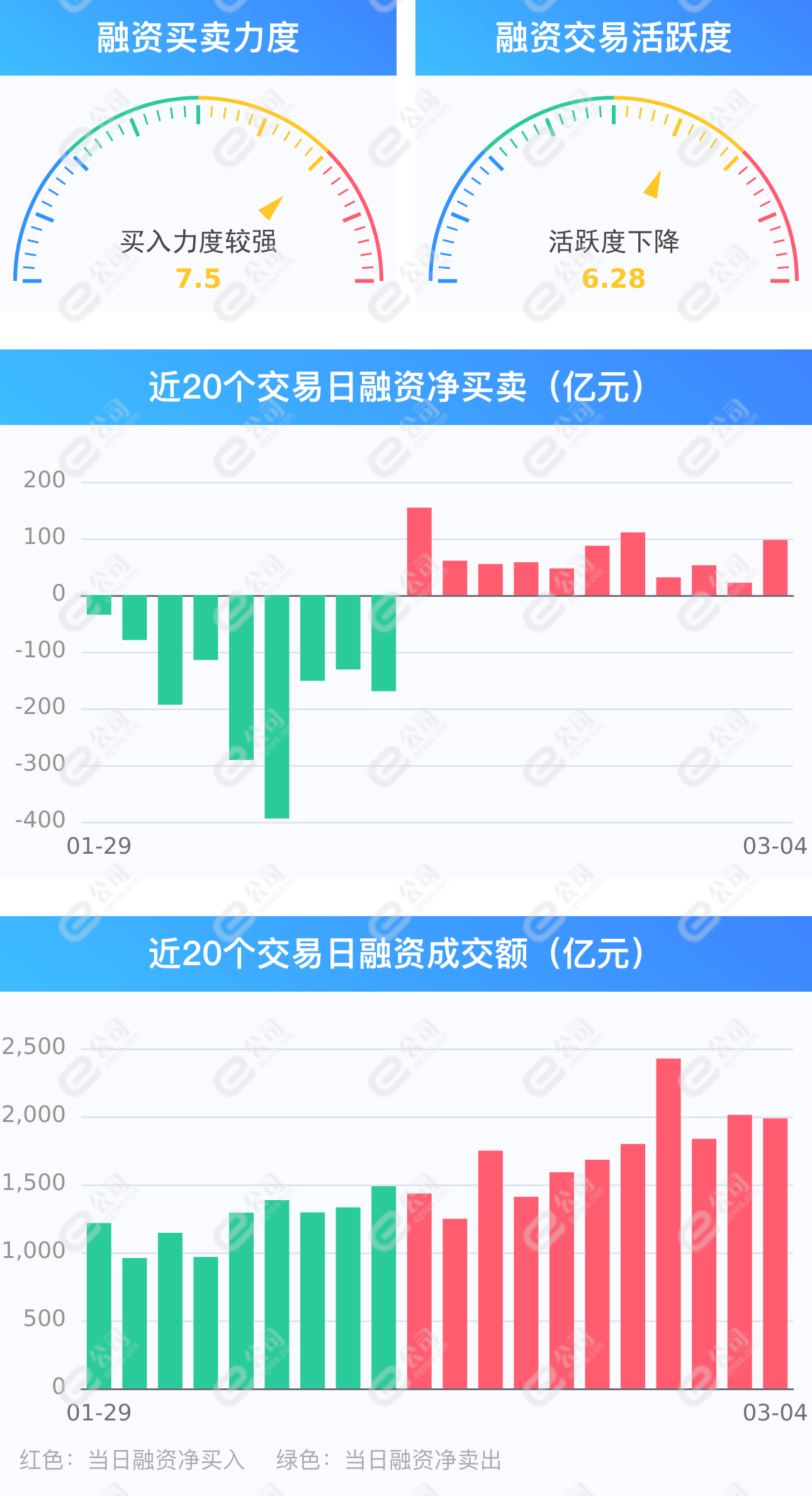 证券时报e公司讯,截至3月4日,上交所融资余额报7678.76亿元,较前一交易日增加38.77亿元;深交所融资余额报6837.55亿元,较前一交易日增加58.41亿元;两市合计14516.31亿元,较前一交易日增加97.18亿元,融资交易额1985.41亿元,占A股成交额18.43%,其中融资买入额1041.29亿元,融资偿还额944.11亿元,交易活跃度下降1.27%。