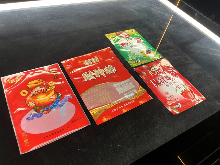 在进入怀旧风情的拍照打卡街区前,人们还可透过展柜,欣赏品牌历来的标志性产品包装。比如夜上海风情礼盒和2010上海世博会特别版礼盒。80、90后观众看到年少时期曾经吃过的麦丽素、财神糖、果汁软糖包装,也许会勾起曾经的回忆。