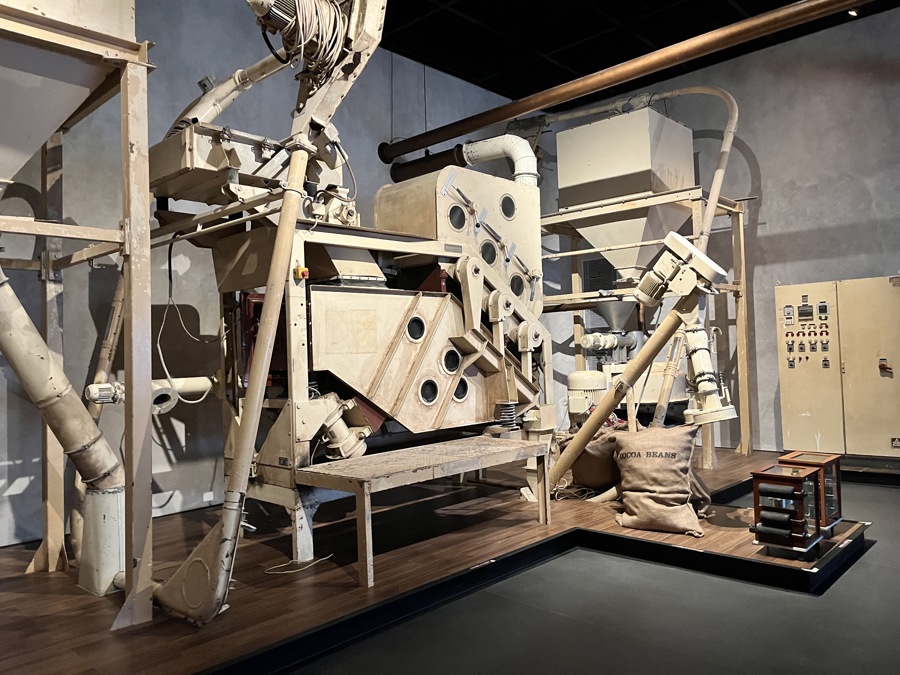 从炒豆机、石磨机、搅拌缸、五辊机到真空干燥箱、熬糖锅、抛光锅、巧克力涂层机、棒棒糖成型机、糖果切割机,人们可以见到各种生产流程所需的机器“真身”,通过阅读说明牌了解该道工序的意义和机器运作的原理。
