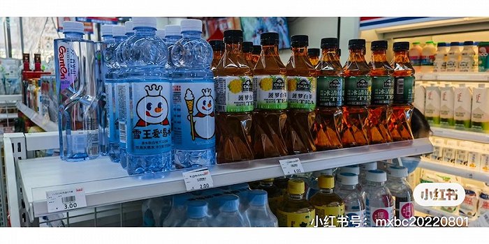 而这些产品大多在蜜雪冰城强势的河南或四川周边“随机掉落”,出现的地点通常是蜜雪冰城门口的展示架或便利店、小超市,即使后续蜜雪冰城瓶装水也进入了成都、重庆的罗森便利店等渠道,但受地域限制最终也没有掀起多少水花。
