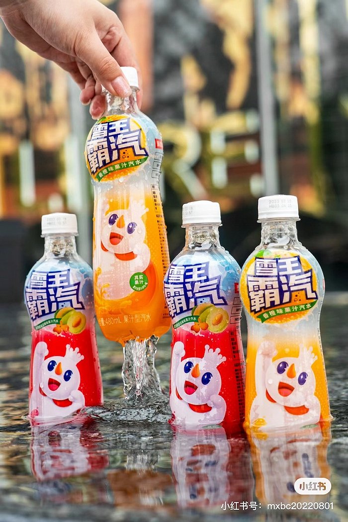 2022年12月,蜜雪冰城通过官方公众号推出旗下瓶装水品牌“雪王爱喝水”,正式开启瓶装业务的布局。几个月后,在2023年春季的全国糖酒会上,蜜雪冰城还披露了新品瓶装气泡水“雪王霸气”,分白桃樱花、香橙、盐渍话梅三种口味。到2023年8月,蜜雪冰城还推出了易拉罐装的“雪王霸气”,这些产品均曾在蜜雪冰城天猫官方旗舰店上架。